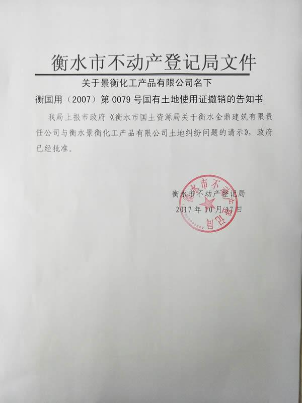 日前,景衡化工產(chǎn)品有限公司利用單方面違法辦理的土地證,要求廢除金鼎集團安裝分公司職工生產(chǎn)、生活用房的房產(chǎn)證。在有些部門不作為、亂作為的情況下,安裝公司職工只好到信訪局要求廢除景衡化工違法土地證。衡水市信訪局副局長吳小松親自接訪,在了解情況后積極與土地部門進行溝通。衡水市國土資源局在接到通知后,迅速作出反映,嚴格按照程序依法做出撤銷景衡土地證的決定。目前,市有關(guān)領(lǐng)導(dǎo)已經(jīng)做出了同意撤銷《衡國用(2007)第0079號國有土地使用證》的批復(fù)。